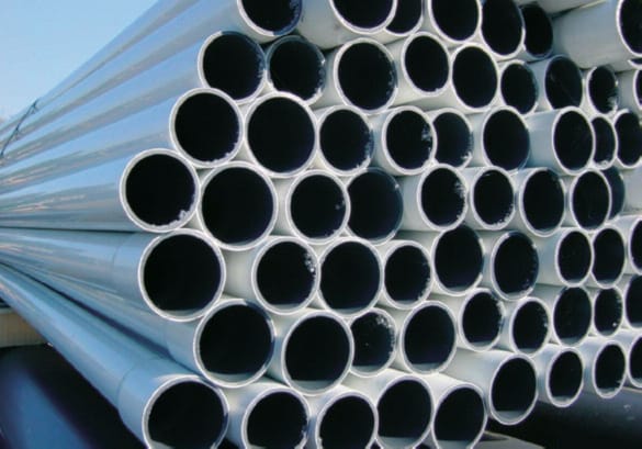 Witte PVC drukbuis ontstaat door coëxtrusie van witte (buitenlaag) en donkergrijze (binnenlaag) grondstoffen. Deze buis heeft een maximale lichtreflectie, wat resulteert in een lagere watertemperatuur en