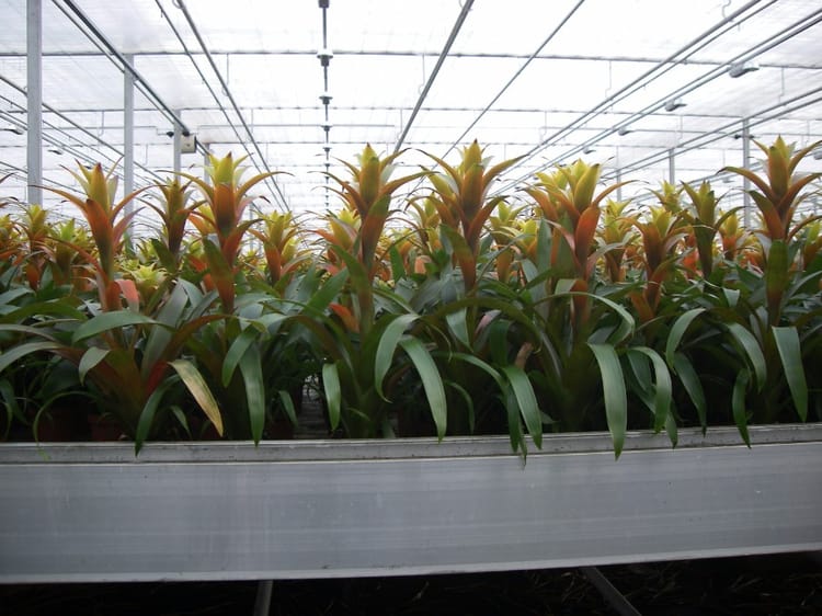 De Bromelia is een tropische plant, die zowel op de grond (terrestrisch) als in de lucht (epifytisch) kan groeien. In de Nederlandse tuinbouw is er vooral sprake van de terrestrische Bromelia, dat geteeld wordt op veen. Het areaal in Nederland (30-70 hectare) neemt af, omdat gewasconcurrentie is ontstaan. Een Bromelia groeit vegetatief, totdat de kweker de plant behandelt met ethyleen. Door de Bromelia te behandelen gaat de Bromeliaplant over op de generatieve (bloeiende) fase, dat zorgt voor de mooie kleur van de centrale koker. Deze centrale kelk zorgt ook voor de voedingsopname van de plant, dat inhoudt dat er via boven voeding gegeven wordt. Bovenberegening is dus hét perfecte irrigatiesysteem voor dit gewas. Netafim biedt deze mogelijkheid en blijft zelf innoveren door middel van kennisoverdracht, zodat uniformiteit en precisie op nummer één komen te staan.